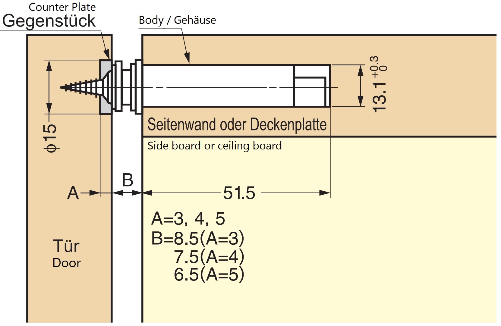 - Per montare la chiusura a scatto magnetica MC-U60, è necessario praticare un foro con un diametro di ⌀14 mm (35/64″) nella parete della carrozzeria